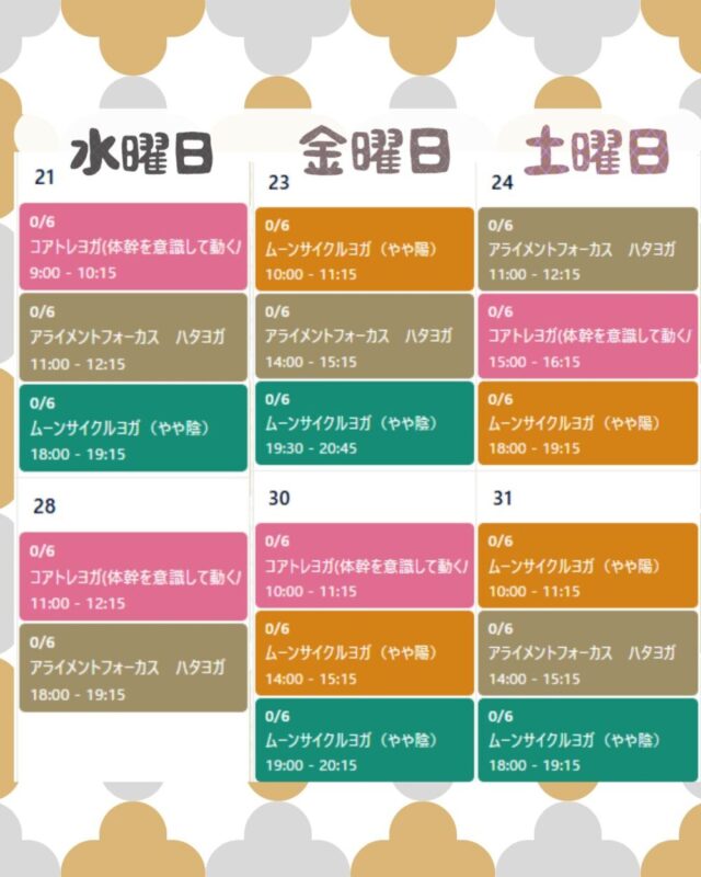 1月のレッスンスケジュールを掲載しました。
